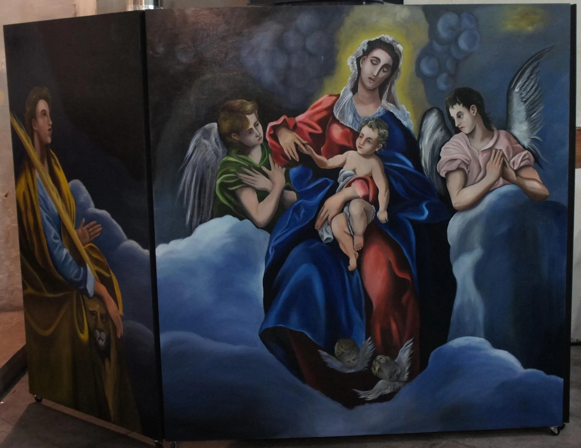 Réalisation d’un triptyque en bois peint – Copie d’El Gréco XVI – la Vierge à l’Enfant - 160x290cm 2014