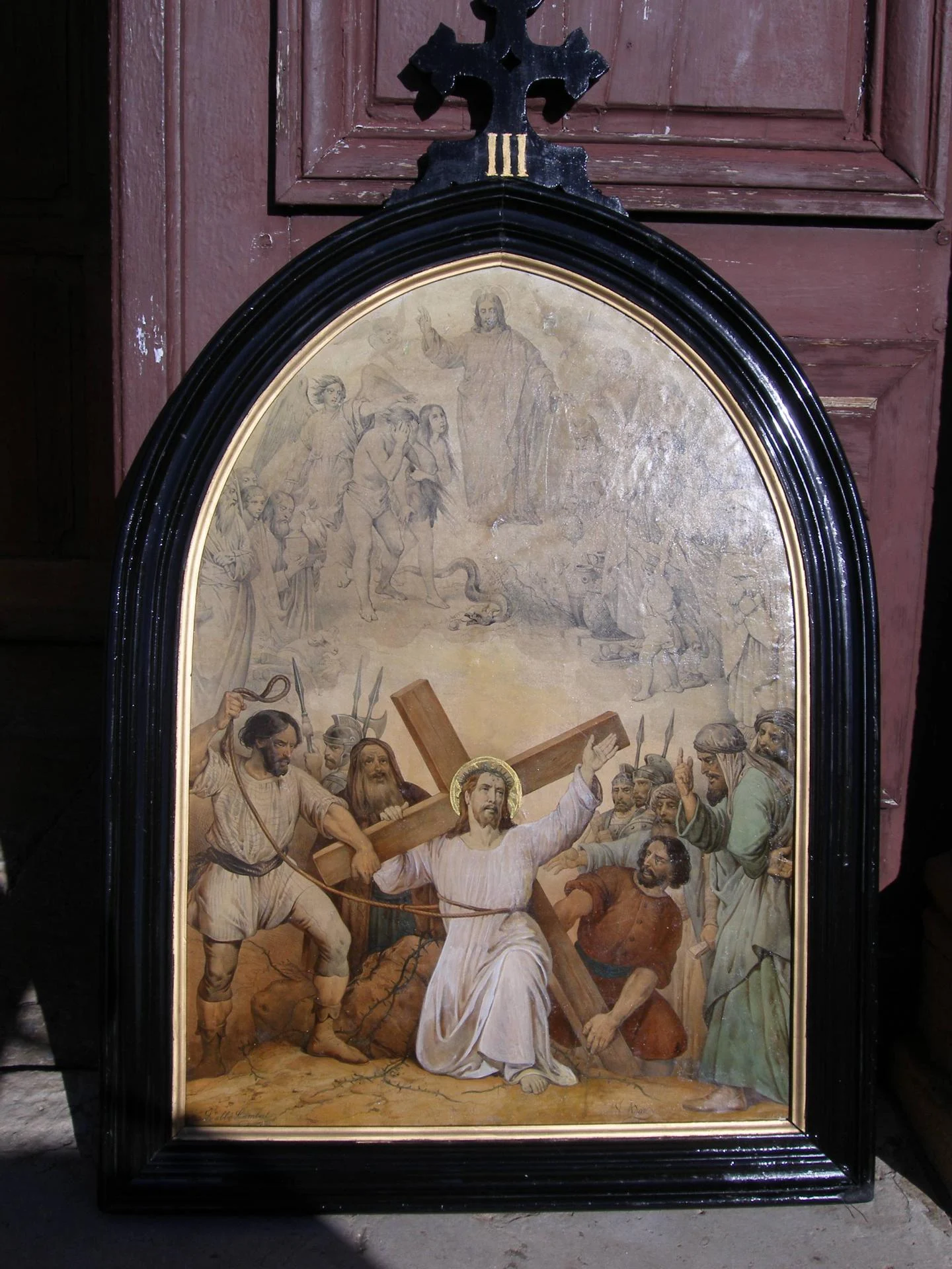 14 stations du chemin de croix, chromolithographies marouflées sur toile avec cadre - Datation 1840 - 73x52cm 2005 - 2006